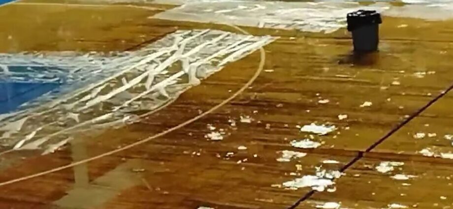 Δεν ήταν τελικά οι σφαίρες από τις μπαλωθιές αλλά μόνιμη και μεγάλη ρηγμάτωση στη μεμβράνη της οροφής, που προκάλεσαν την βροχή μέσα στο κλειστό του Κλαδισσού