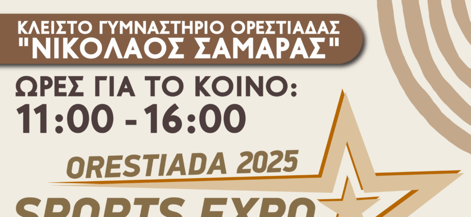 Ο Δήμος Ορεστιάδας διοργανώνει την 1η ΕΚΘΕΣΗ ΑΘΛΗΤΙΣΜΟΥ ΚΑΙ ΥΓΕΙΑΣ, «SportsΕΧPO Οrestiada 2025» και ενώνουν τις δυνάμεις τους με το Δημοκρίτειο Πανεπιστήμιο Θράκης (ΔΠΘ). Μαζί συνδιοργανώνουμε, στα πλαίσια καταπολέμησης της παιδικής παχυσαρκίας του Εθνικού Σχεδίου Δράσης, μία μεγάλη αθλητική γιορτή για παιδιά και οικογένειες. Στόχος είναι η ευαισθητοποίηση και η συμμετοχή παιδιών και γονέων με σύνθημα «Κινούμαι, Παίζω, Ζω Υγιεινά!»