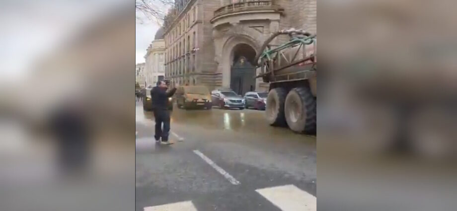 Αγρότες ρίχνουν κοπριά στις αστυνομικές δυνάμεις στο Λιμόζ / Πηγή: Χ