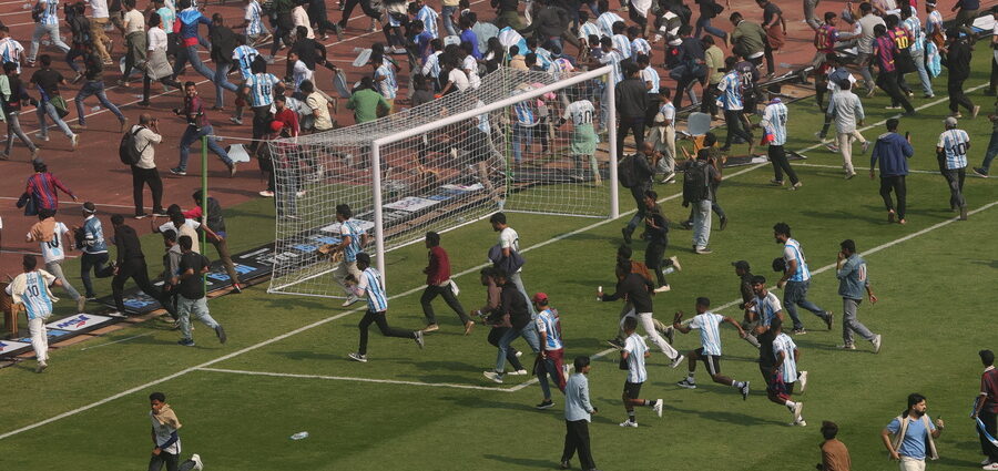 Η περιοδεία του Λιονέλ Μέσι στην Ινδία ξεκίνησε με χαοτικό τρόπο το Σάββατο (13/12), καθώς οπαδοί ξήλωσαν καθίσματα και τα εκσφενδόνισαν προς τον αγωνιστικό χώρο μετά τη σύντομη επίσκεψη του Αργεντινού και παίκτη της Ίντερ Μαϊάμι στο Στάδιο Salt Lake στην Καλκούτα, σύμφωνα με το πρακτορείο ειδήσεων ANI.