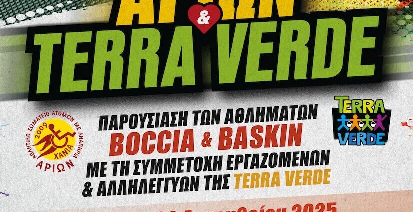Σε νέα δράση προχωρά η Terra Verde με την δημιουργία μιας αθλητικής ομάδας. Ο Αθλητικός Σύλλογος Αρίων Χανίων θα παρουσιάσει τα μυστικά των αθλημάτων Μπότσια και Μπάσκιν.