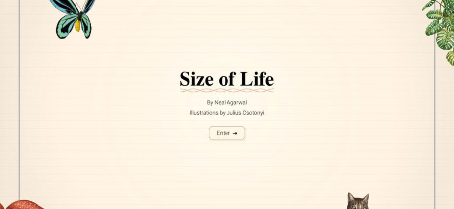Το «Size of Life» δεν είναι απλώς άλλη μια ιστοσελίδα με γραφήματα. Πρόκειται για μια συνεργασία υψηλού επιπέδου μεταξύ του προγραμματιστή Neal Agarwal και του καταξιωμένου Καναδού επιστημονικού εικονογράφου Julius Csotonyi…. Πηγή