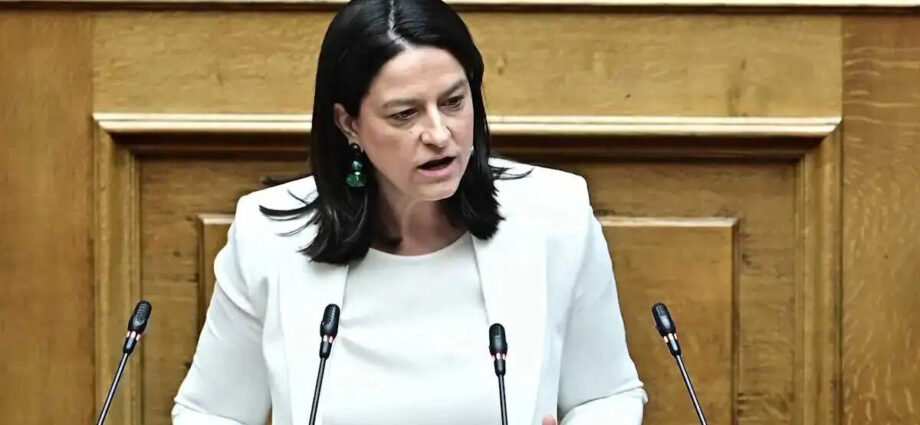 Η υπουργός Εργασίας και Κοινωνικής Ασφάλισης, Νίκη Κεραμέως στο βήμα της Ολομέλειας της Βουλής / EUROKINISSI / Φωτογραφία αρχείου
