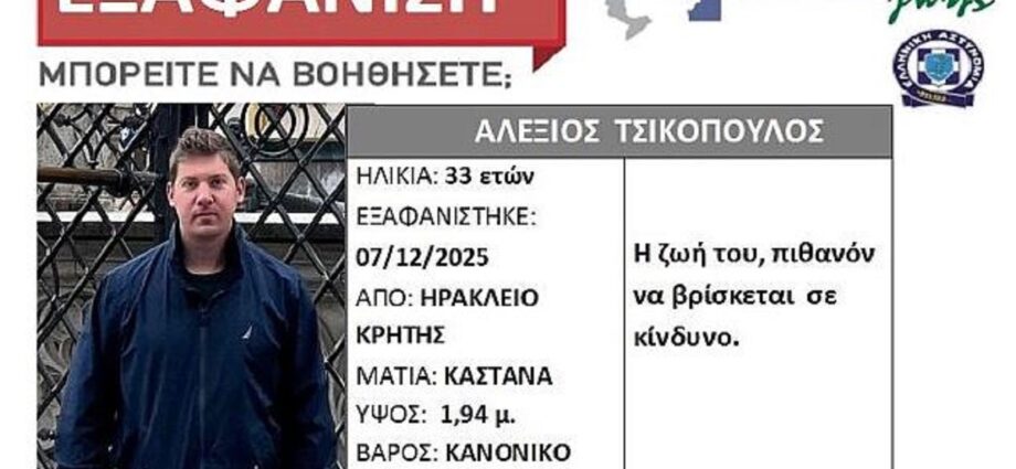 Το μεσημέρι της Παρασκευής (19/12) αναμένεται να βρεθεί ενώπιων των δικαστικών αρχών, ο 54χρονος που ενεπλάκη στις έρευνες για τον εντοπισμό του 33χρονου αγνοουμένου, Αλέξη Τσικόπουλου, καθώς φέρεται να εξαπάτησε την οικογένειά του.