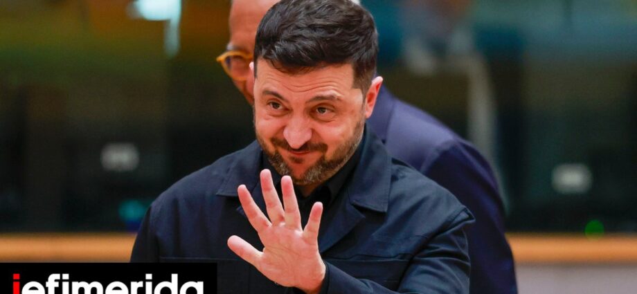 Ο Πρόεδρος της Ουκρανίας, Βολοντίμιρ Ζελένσκι, χαιρετά κατά τη διάρκεια της Συνόδου Κορυφής της ΕΕ στις Βρυξέλλες / Φωτογραφία AP