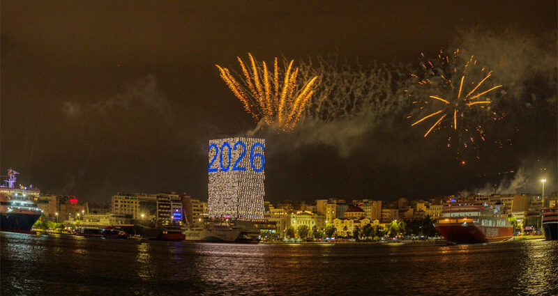 Στα πρώτα λεπτά του 2026, ο Πύργος του Πειραιά, το εμβληματικό τοπόσημο της πόλης, πρωταγωνίστησε σε ένα μοναδικό οπτικοακουστικό θέαμα.