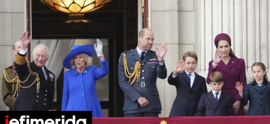 Στο μπαλκόνι του Μπάκιγχαμ σύσσωμη η βασιλική οικογένεια /Φωτογραφία: AP Photo
