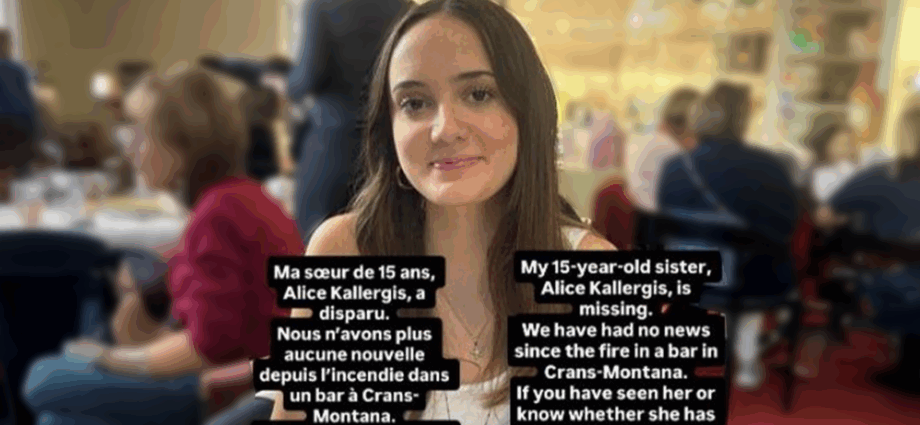 Τη 15χρονη ελληνικής καταγωγής Αλίκη Καλλέργη, που βρισκόταν στο μπαρ «Le Constellation», στο Κραν Μοντανά, όπου ξέσπασε η φονική πυρκαγιά, αναζητούν οι συγγενείς της, κάνοντας εκκλήσεις μέσα από τα social media για πληροφορίες.
