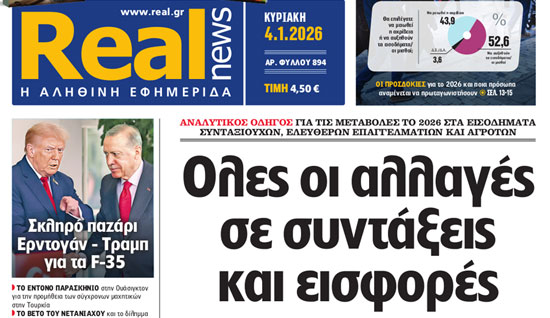 Με τίτλο: «Ολες οι αλλαγές σε συντάξεις και εισφορές» κυκλοφορεί, αυτήν την Κυριακή, η Realnews.