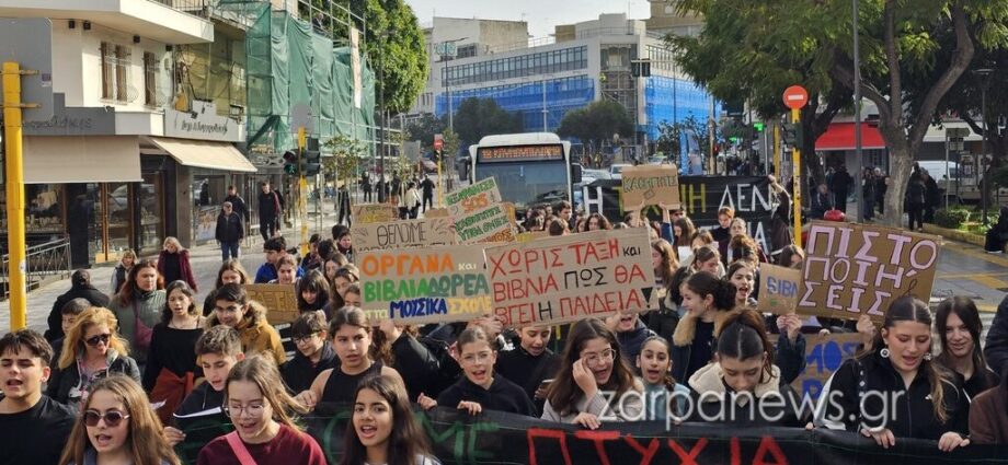 Με σύνθημά τους “οι μαθητές δεν σκύβουν το κεφάλι, παλεύουμε για μόρφωση και κοινωνία άλλη”, με πανό κι όλοι μαζί ενωμένοι σε μια φωνή, οι μαθητές του Μουσικού Σχολείου Χανίων βγήκαν στον δρόμο για να διαμαρτυρηθούν και να διεκδικήσουν τα αιτήματά τους.