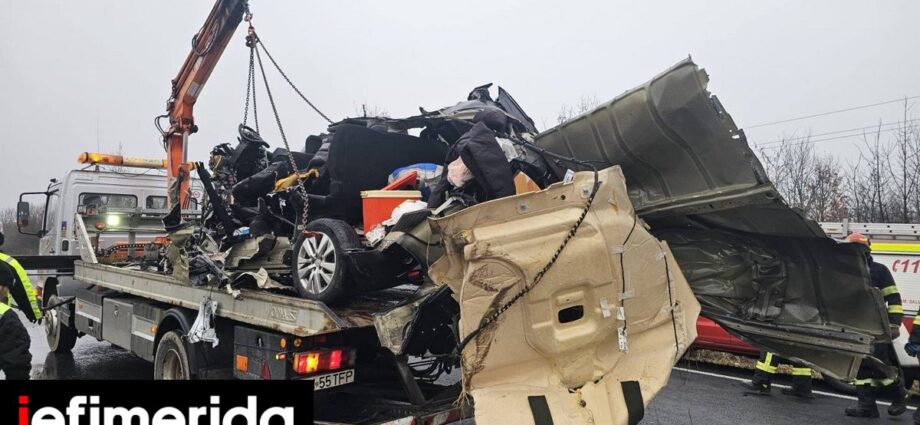 Σε άμορφη μάζα σιδηρικών μετατράπηκε το βαν που μετέφερε τους οπαδούς του ΠΑΟΚ