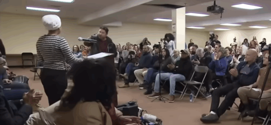 Η βουλεύτρια της αριστερής πτέρυγας των Δημοκρατικών Ιλχάν Όμαρ διέκοψε ομιλία της σε αίθουσα στη Μινεάπολη όταν λευκός άνδρας εκτόξευσε προς την κατεύθυνσή της μικρή ποσότητα άγνωστου υγρού, προτού φύλακας τον ρίξει στο έδαφος. Ads Την ώρα που εκείνη μιλούσε, άνδρας στην πρώτη σειρά των καθισμάτων σηκώθηκε, εκτόξευσε χρησιμοποιώντας μια σύριγγα μικρή ποσότητα άγνωστου υγρού προς την κατεύθυνσή της κι είπε κάτι που δεν έχει διευκρινιστεί μέχρι στιγμής, προτού τον σταματήσει ο φύλακας.