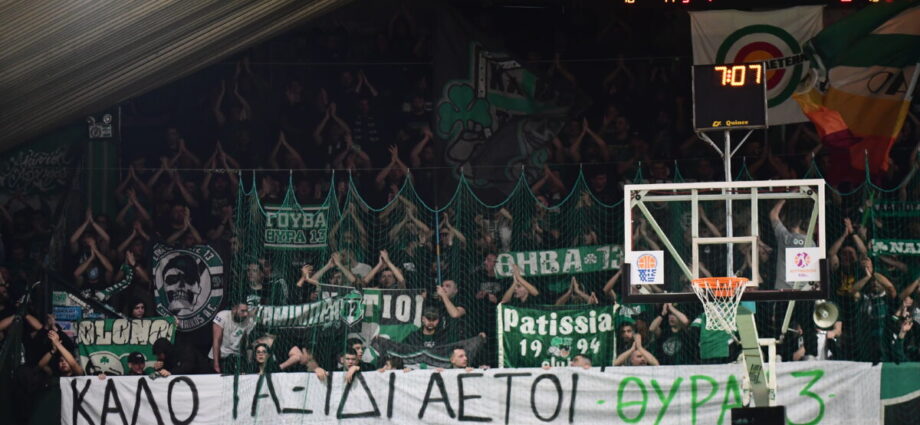 Στο κλειστό της Λεωφόρου οι φίλοι του Παναθηναϊκού τίμησαν τη μνήμη των οπαδών του ΠΑΟΚ, που έχασαν τη ζωή τους στο σοκαριστικό τροχαίο στη Ρουμανία, με ένα πανό που έγραφε «καλό ταξίδι αετοί».