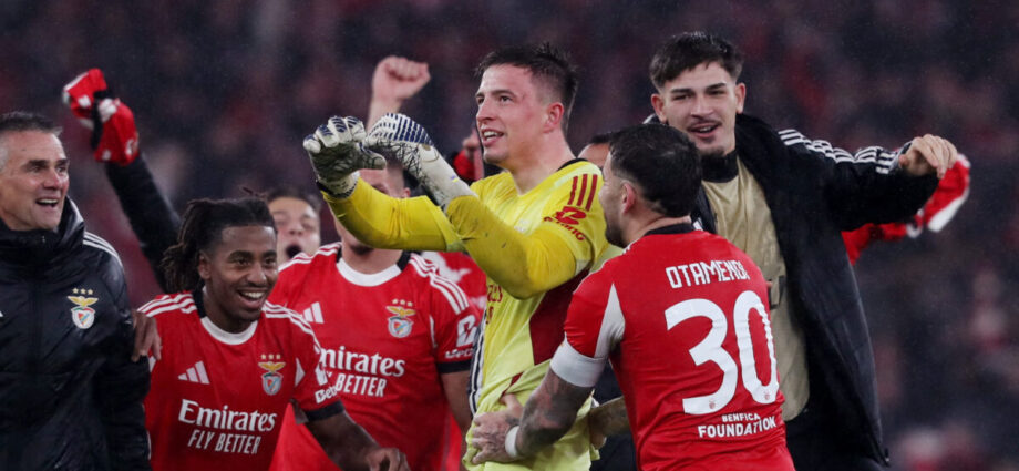 Οι παίκτες της Μπενφίκα πανηγυρίζουν την πρόκριση/ REUTERS/Pedro Rocha