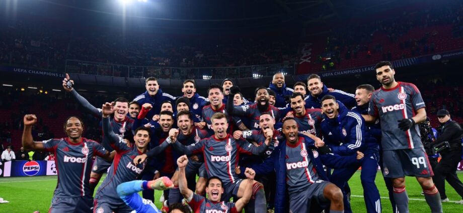 Οι ερυθρόλευκοι πέτυχαν σπουδαία νίκη με 2-1 επί του Άγιαξ στο Άμστερνταμ και πήραν την πρόκριση για τη νοκ άουτ φάση του Champions League.
