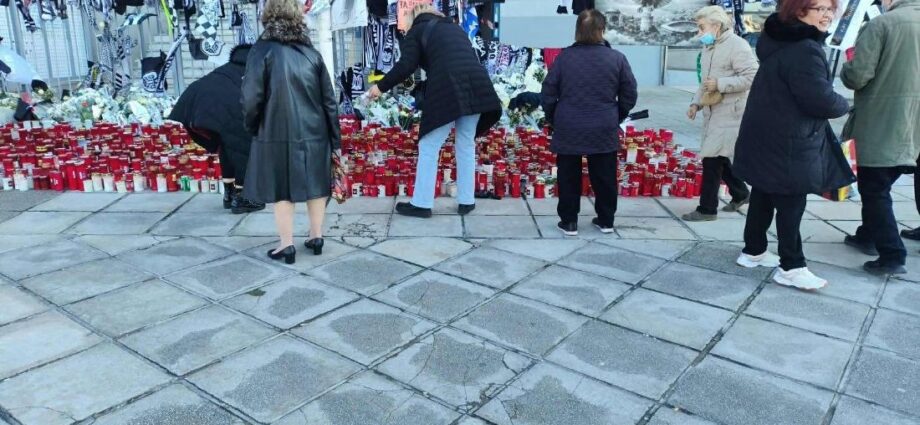 Από τη Χαλκιδική έως την Κοζάνη κι από την Καβάλα έως τα Τρίκαλα, εκατοντάδες πολίτες καταφτάνουν από το πρωί στο γήπεδο του Δικεφάλου ώστε να αφήσουν λουλούδια, πανό, κασκόλ, σημειώματα και κεράκια για τους αδικοχαμένους νεαρούς, έξω από τις θύρες των επισήμων στην Τούμπα.