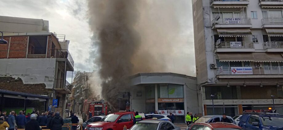Η φωτιά φαίνεται πως επεκτάθηκε σε κατάστημα υποδημάτων επί της οδού Κύπρου στο κέντρο της πόλης.