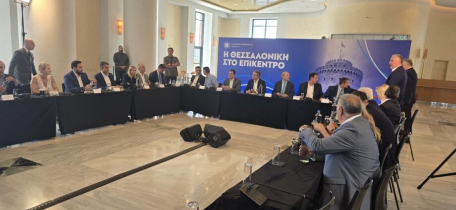 Στις 10.25 άρχισε η σύσκεψη του πρωθυπουργού, Κυριάκου Μητσοτάκη, με τους βουλευτές της Α’ και Β’ Θεσσαλονίκης, αλλά και της Κεντρικής Μακεδονίας, στο κεντρικό κτήριο του Μεγάρου Μουσικής.
