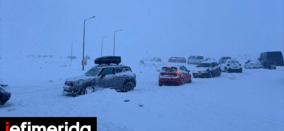 Απεγκλωβίστηκαν όλοι οι επισκέπτες από το χιονοδρομικό κέντρο Φαλακρού -Οχήματα είχαν ανέβει χωρίς αντιολισθητικές και «κόλλησαν»