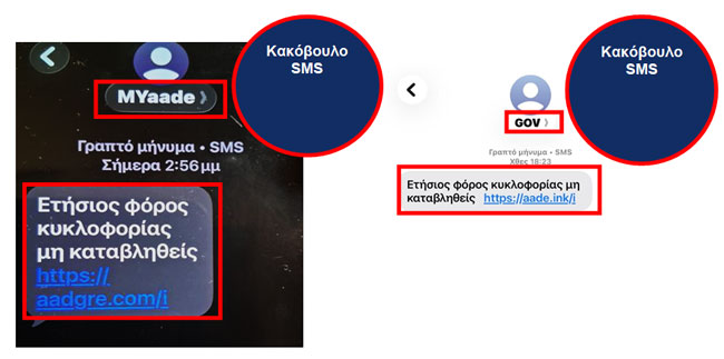 ΑΑΔΕ: Προσοχή σε παραπλανητικά SMS για φόρο κυκλοφορίας που εμφανίζονται ως “MYaade” ή “GOV”
