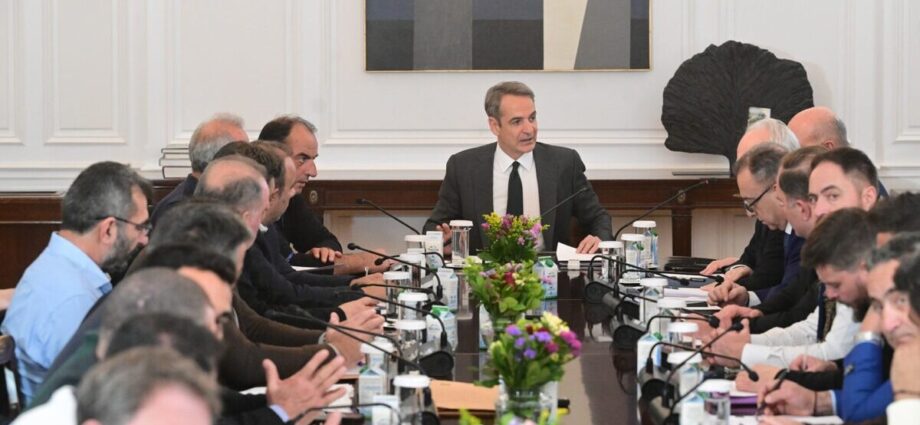 Ολοκληρώθηκε η σύσκεψη, υπό τον πρωθυπουργό Κυριάκο Μητσοτάκη, στο Μέγαρο Μαξίμου, με εκπροσώπους των κτηνοτρόφων, με επίκεντρο τη διαχείριση της ευλογιάς των αιγοπροβάτων και τα επόμενα βήματα στήριξης του κλάδου.