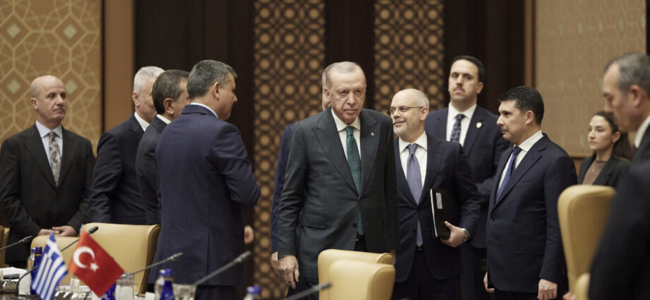 Στιγμιότυπο από τη συνεδρίαση του 6ου Ανώτατου Συμβουλίου Συνεργασίας Ελλάδας – Τουρκίας στην Άγκυρα, παρουσία του Κυριάκου Μητσοτάκη και του Ρετζέπ Ταγίπ Ερντογά (Πηγή φωτογραφίας: ΓΤ Πρωθυπουργού)