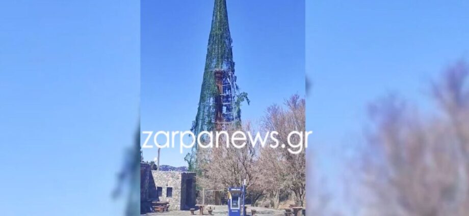 Ενώ γιορτάσαμε τις απόκριες και κατευθυνόμαστε προς το Πάσχα, στο Ξυλόσκαλο, επικρατούν ακόμα Χριστούγεννα, με το μεγάλο δέντρο που είχε στηθεί και το ύψος του ξεπερνούσε τα 40 μέτρα να παραμένει εκεί, έχοντας υποστεί μεγάλη διάλυση.