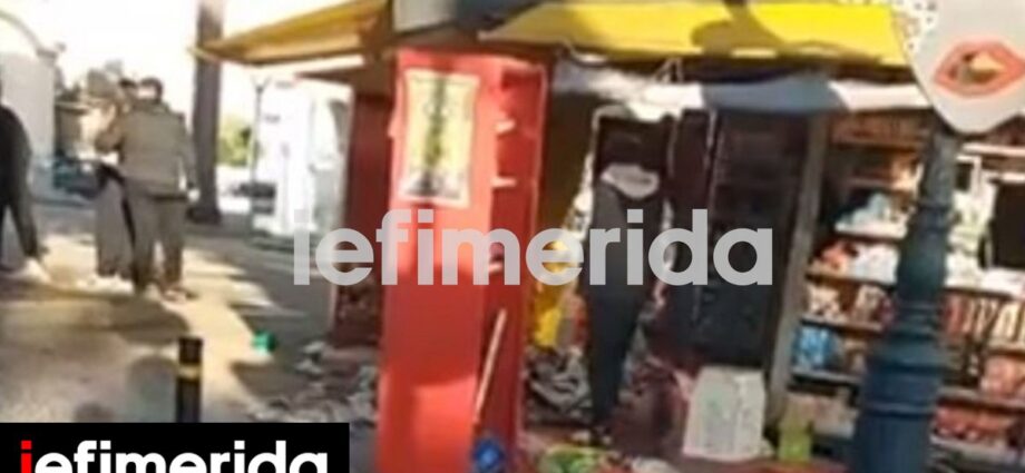 «Βομβαρδισμένο τοπίο» θυμίζει το περίπτερο στη Γαστούνη Ηλείας, μετά την άγρια επίθεση σε βάρος του ιδιοκτήτη του και του γιου του από ομάδα Ρομά.