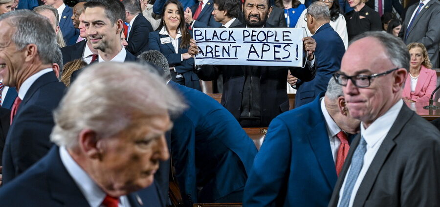 Την ώρα που ο πρόεδρος των ΗΠΑ Ντόναλντ Τραμπ απευθυνόταν στο Κογκρέσο, ο Αφροαμερικανός Δημοκρατικός βουλευτής από το Τέξας, Αλ Γκριν, σήκωσε ένα πλακάτ με τη φράση «οι μαύροι δεν είναι πίθηκοι». Ads Το περιστατικό σημειώθηκε τη στιγμή που ο Τραμπ ξεκινούσε την ομιλία του για την «Κατάσταση του Έθνους» ενώπιον της Ολομέλειας και των δύο σωμάτων του Κογκρέσου.