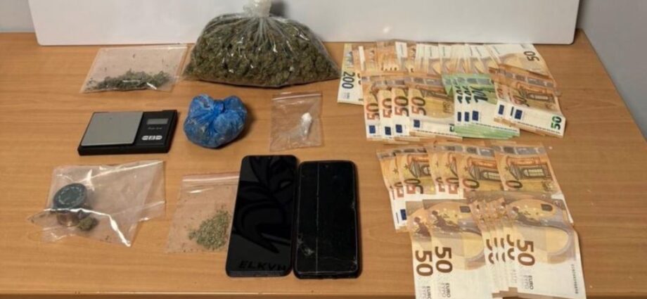 Στη συνέχεια έγινε έρευνα από την αστυνομία στον χώρο του σπιτιού τους, όπου βρέθηκαν και κατασχέθηκαν συνολικά 201,5 γραμμάρια κάνναβης, μικροποσότητα κοκαΐνης, χρηματικό ποσό 5.700 ευρώ ως προερχόμενο από εγκληματική δραστηριότητα, ζυγαριά, τρίφτης, 2 συσκευές κινητής τηλεφωνίας.