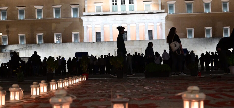 Φαναράκια γύρω από τα ονόματα των νεκρών του σιδηροδρομικού δυστυχήματος των Τεμπών / EUROKINISSI / Φωτογραφία Τατιάνα Μπόλαρη