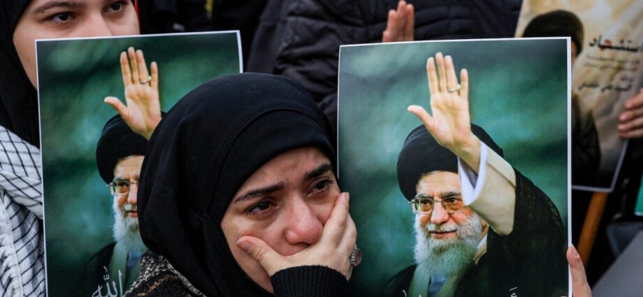 Ιρανή θρηνεί για τον θάνατο του Αλί Χαμενεΐ κρατώντας φωτογραφία του / REUTERS / Mohamed Azakir / File Photo