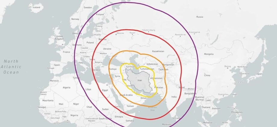 Η απόσταση είναι το πρώτο και πιο μετρήσιμο στοιχείο. Από το δυτικό Ιράν έως την Κρήτη η ευθεία απόσταση κυμαίνεται περίπου στα 2.100–2.300 χιλιόμετρα, ενώ από πιο κεντρικές περιοχές προσεγγίζει τα 2.400–2.500 χιλιόμετρα. Πρόκειται για αποστάσεις που τοποθετούν την Κρήτη στο ανώτατο όριο των δυνατοτήτων ορισμένων πυραυλικών συστημάτων μέσης εμβέλειας που αποδίδονται στο Ιράν σε ανοικτές πηγές.