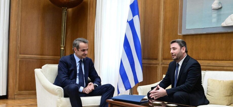 Ο πρωθυπουργός, Κυριάκος Μητσοτάκης, και ο πρόεδρος του ΠΑΣΟΚ, Νίκος Ανδρουλάκης (Φωτογραφία αρχείου / ΤΑΤΙΑΝΑ ΜΠΟΛΑΡΗ/EUROKINISSI)
