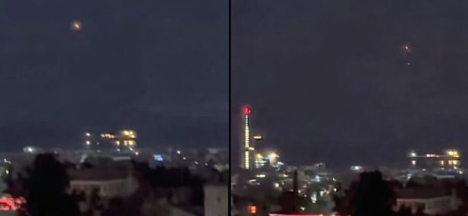 Το οπτικό υλικό, τραβηγμένο από κατοικημένη ζώνη, δείχνει ένα έντονα φωτισμένo αντικείμενο να κινείται σε απόσταση πάνω από τα ανοιχτά.