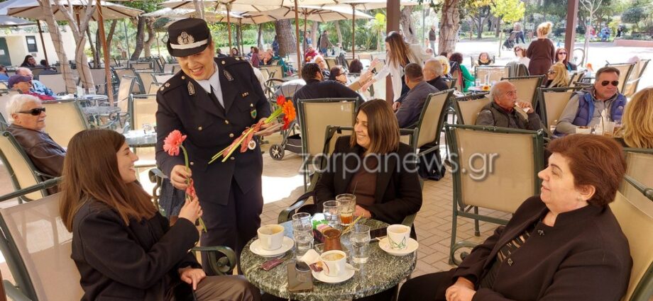 Αστυνομικοί μοίρασαν λουλούδια στις γυναίκες στον Δημοτικό Κήπο Χανίων