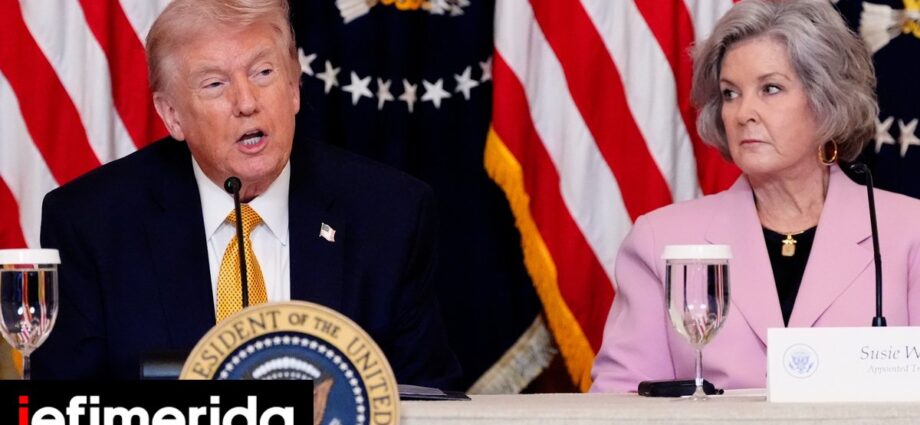 Ο Ντόναλντ Τραμπ σε συνέντευξη Τύπου – Δίπλα του η προσωπάρχης του Λευκού Οίκου, Σούζι Γουάιλς / AP