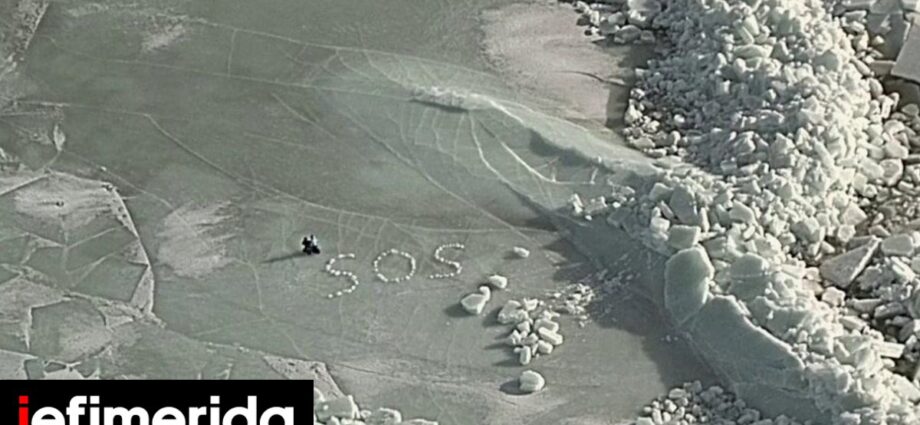 Δύο Γερμανοί χρησιμοποίησαν κομμάτια πάγου για να γράψουν SOS, αφού ο παγωμένος κόλπος στον οποίο διανυκτέρευσαν έσπασε.
