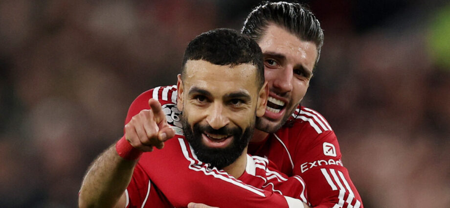 Ο Σαλάχ πανηγυρίζει το γκολ του/ REUTERS/Phil Noble