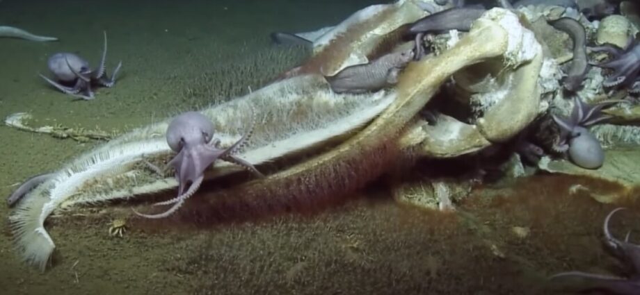 Από «βλεννώδη λουλούδια» που καταναλώνουν οστά μέχρι σκουλήκια που μοιάζουν να «γλιστρούν» πάνω σε βακτηριακά στρώματα, ο θάνατος μιας φάλαινας μετατρέπει τον βυθό σε μια τεράστια όαση ζωής, προσελκύοντας αλλόκοτα και εντυπωσιακά πλάσματα. Ads Οι φάλαινες αποτελούν γιγαντιαίους «φορείς τροφής» των ωκεανών. Μεταφέρουν έως και 150 τόνους οργανικής ύλης – σάρκα, λίπος και οστά – από την επιφάνεια στα μεγάλα βάθη. Το σώμα τους, όταν πεθαίνουν, μετατρέπεται σε ένα τεράστιο οικοσύστημα – σε εξέλιξη αποσύνθεσης, γράφει το BBC σε ειδικό άρθρο του.