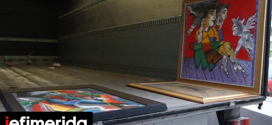 Κατασχέθηκαν πίνακες από την γκαλερί του Γιώργου Τσαγκαράκη / Φωτογραφία: INTIMENEWS