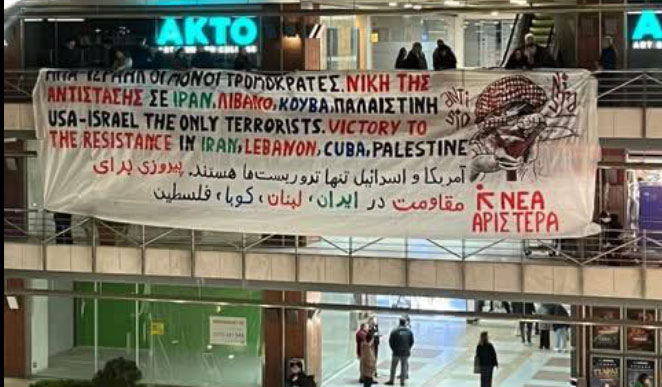 Ο Γαβριήλ Σακελλαρίδης γράφει σχετικά: Πριν λίγα λεπτά, μέλη της Νεολαία Νέας Αριστεράς – Youth New Left στη Θεσσαλονίκη άνοιξαν πανό απέναντι από το Αμερικανικό Προξενείο στην πόλη με αντιπολεμικό μήνυμα για τον πόλεμο Τραμπ-Νετανιάχου στο Ιράν. Για αυτό τον λόγο κρατούνται τώρα από την Αστυνομία με σκοπό να προσαχθούν στην Ασφάλεια. Από πότε η έκφραση αντιπολεμικής άποψης αποτελεί λόγο κράτησης; Πόσο ακόμα η κυβέρνηση Μητσοτάκη θα συνεχίσει να συμπεριφέρεται ως τοποτηρητής του Τραμπ και του Νετανιάχου… Πηγή