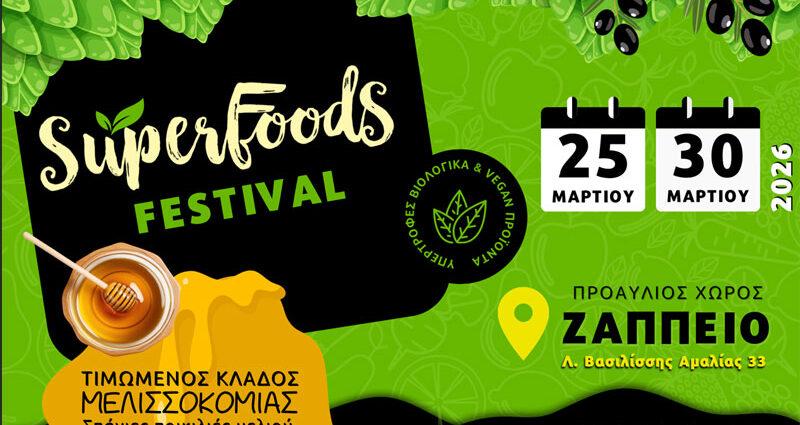 Από 25 έως 30 Μαρτίου, ο προαύλιος χώρος του Ζαππείου γίνεται το σημείο που η ελληνική παράδοση συναντά την καινοτομία και τη διατροφική αξία. Έξι μέρες γεμάτες γεύσεις, αρώματα και superfoods περιμένουν τους επισκέπτες όλων των ηλικιών.