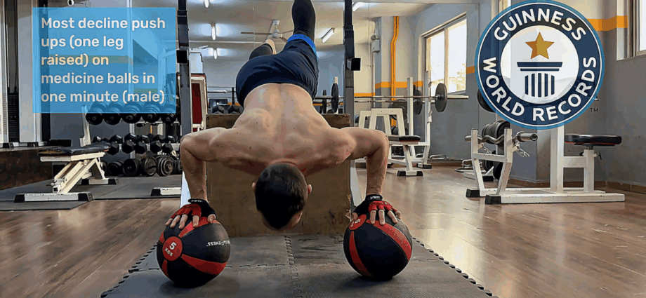 Το ρεκόρ επικυρώθηκε επίσημα από τον οργανισμό Guinness World Records στην κατηγορία “Most decline push-ups (one leg raised) on medicine balls in one minute”.