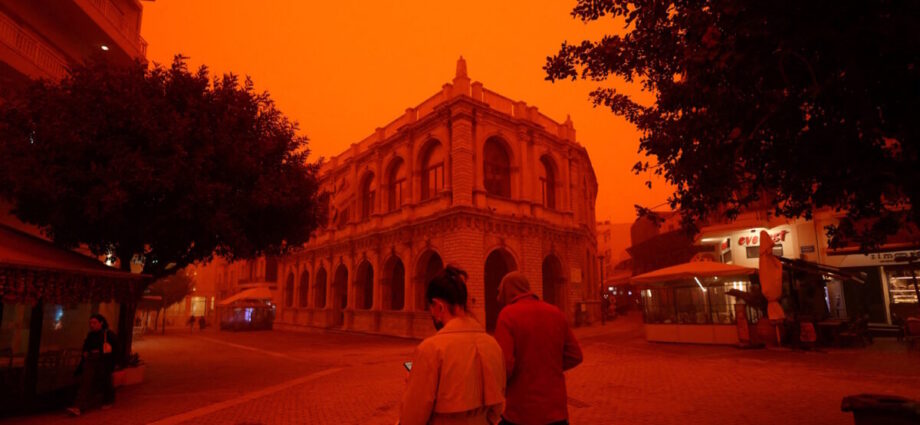 Δεν είναι η πρώτη φορά που η αφρικανική σκόνη «επισκέπτεται» την Κρήτη, ωστόσο κάτι τέτοιο όπως λένε και οι γηραιότεροι δεν το έχουν ξαναδεί. Μάλιστα, μια γιαγιά στην κυριολεξία τρόμαξε και συνομιλώντας με τον γιο της αναστατωμένη του είπε ότι αυτό είναι σαν Δευτέρα Παρουσία.