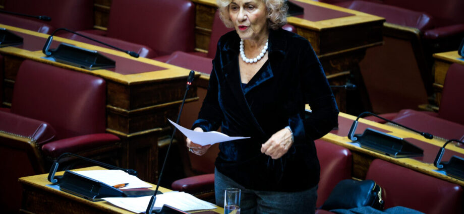 Η βουλευτής της Νέας Αριστεράς, Θεανώ Φωτίου, στην Ολομέλεια της Βούλης (Φωτογραφία αρχείου / ΓΙΩΡΓΟΣ ΚΟΝΤΑΡΙΝΗΣ / EUROKINISSI)