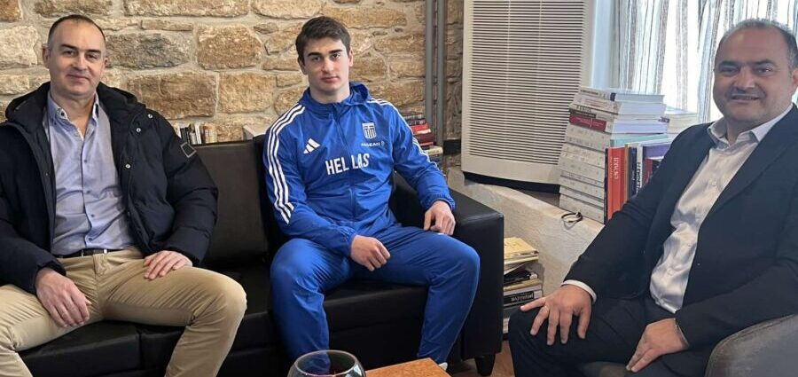 Θερμά συγχαρητήρια για τις επιδόσεις του και προσφορά ενός νέου αγωνιστικού ακοντίου