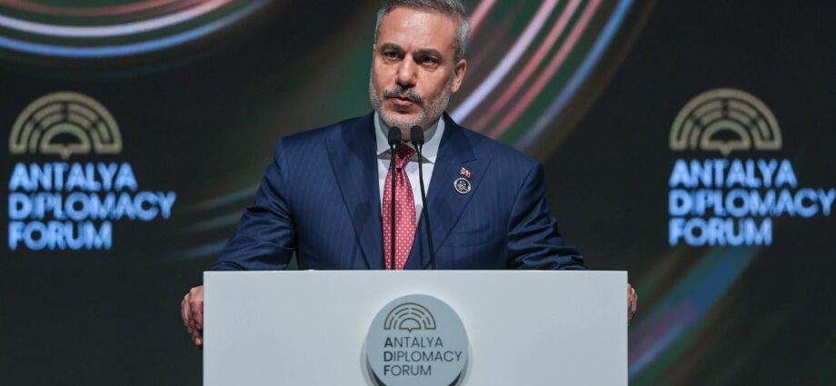 Ο υπουργός Εξωτερικών της Τουρκίας, Χακάν Φιντάν, μιλά κατά την τελετή έναρξης του Διπλωματικού Φόρουμ Αττάλειας, στην Αττάλεια της νότιας Τουρκίας, στις 17 Απριλίου 2026.