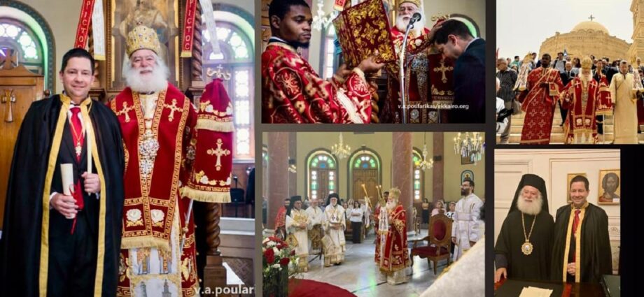 Σε κλίμα βαθιάς συγκίνησης πραγματοποιήθηκε την Παρασκευή 17 Απριλίου στην ελληνορθόδοξη Ιερά Πατριαρχική Μονή του Αγίου Γεωργίου Παλαιού Καΐρου, από τον Πάπα και Πατριάρχη Αλεξανδρείας και πάσης Αφρικής κ.κ. Θεόδωρο, η χειροθέτηση του Πρύτανη του Εθνικού και Καποδιστριακού Πανεπιστημίου Αθηνών Καθηγητή Γεράσιμου Σιάσου σε Μεγάλο Άρχοντα του Πατριαρχείου Αλεξανδρείας.