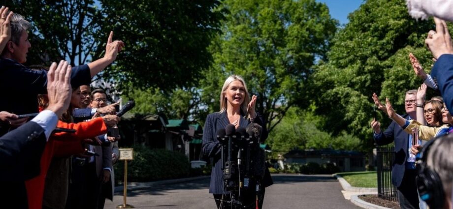 Η εκπρόσωπος Τύπου του Λευκού Οίκου, Καρολάιν Λέβιτ, μιλάει στους δημοσιογράφους στο Λευκό Οίκο, την Τετάρτη 22 Απριλίου 2026, στην Ουάσινγκτον. (AP Photo/Alex Brandon)